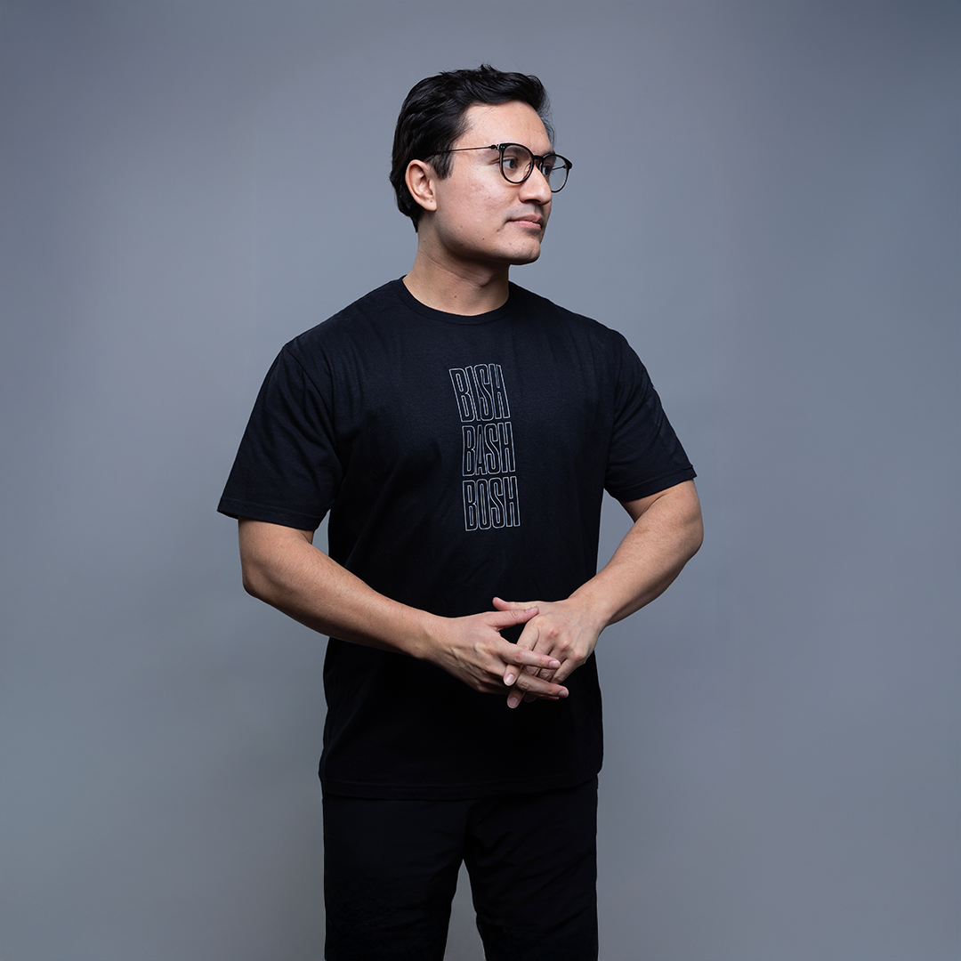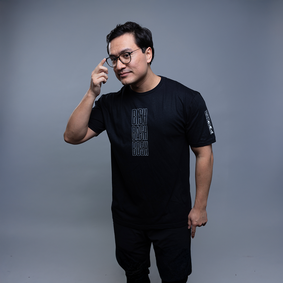 This limited edition premium black tee features the iconic "Bish, Bash, Bosh" slogan boldly printed across the chest, making it a standout piece for Counter Strike fans. The sleeve features subtle BLAST Bounty icons.